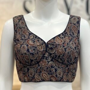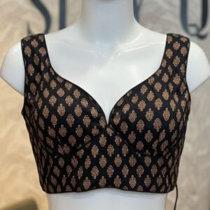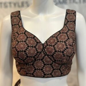 RARA AJRAKH SLEEVELESS BLOUSE (SLEEVE ATTACHED) – FREE SIZE UPTO 44 (BLACK WITH BROWN)