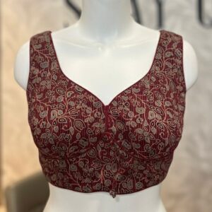 RARA AJRAKH SLEEVELESS BLOUSE (SLEEVE ATTACHED) – FREE SIZE UPTO 44 (MAROON)