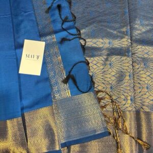 SLAY Q NESA SERIES | PLAIN PATTU SAREE WITH RUNNING BLOUSE & BEAUTIFUL GOLD ZARI BORDER | BRIDESMAID SAREE – ELECTRIC BLUE