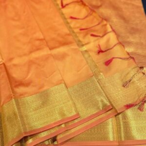 SLAY Q NESA SERIES | PLAIN PATTU SAREE WITH RUNNING BLOUSE & BEAUTIFUL GOLD ZARI BORDER | BRIDESMAID SAREE – MARIGOLD