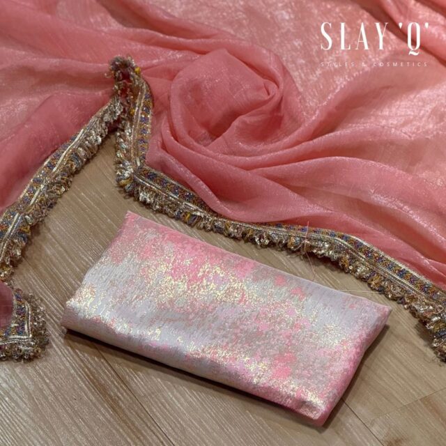 SLAY Q IRIS SERIES READYMADE SAREE WITH PLAIN & EXTRA UNIQUE BROCADE BLOUSE | METALLIC SHINE SAREE FABRIC – BLUSH PINK