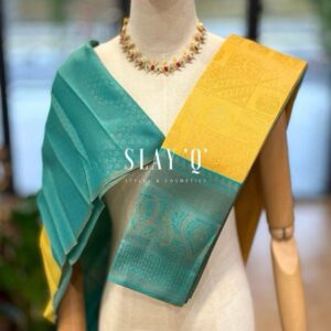SLAY Q AASHI SERIES | BRIDESMAID SEMI SILK SAREE (SOFT FABRIC) – YELLOW + TURQUOISE