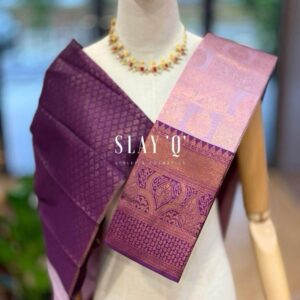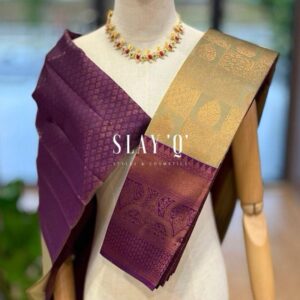 SLAY Q AASHI SERIES | BRIDESMAID SEMI SILK SAREE (SOFT FABRIC) – GOLDEN SAGE + PURPLE