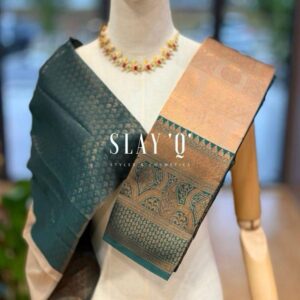 SLAY Q AASHI SERIES | BRIDESMAID SEMI SILK SAREE (SOFT FABRIC) – ROSE GOLD + DARK GREEN