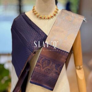 SLAY Q AASHI SERIES | BRIDESMAID SEMI SILK SAREE (SOFT FABRIC) – ASH GREY + MIDNIGHT BLUE
