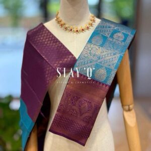 SLAY Q AASHI SERIES | BRIDESMAID SEMI SILK SAREE (SOFT FABRIC) – TEAL BLUE + PURPLE