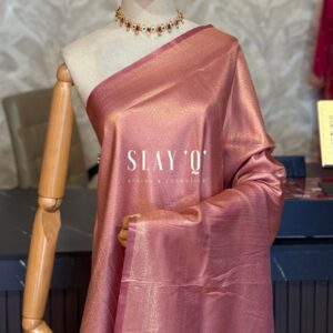 SLAY Q IRIS SERIES READYMADE SAREE WITH PLAIN & EXTRA UNIQUE BROCADE BLOUSE | METALLIC SHINE SAREE FABRIC – BLUSH PINK