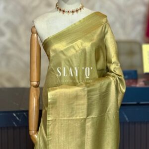 SLAY Q IRIS SERIES READYMADE SAREE WITH PLAIN & EXTRA UNIQUE BROCADE BLOUSE | METALLIC SHINE SAREE FABRIC – SUNLIT GLEAM