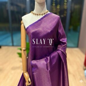 SLAY Q IRIS SERIES READYMADE SAREE WITH PLAIN & EXTRA UNIQUE BROCADE BLOUSE | METALLIC SHINE SAREE FABRIC – ROYAL PURPLE