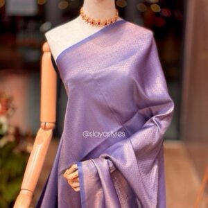 SLAY Q IRIS SERIES READYMADE SAREE WITH PLAIN & EXTRA UNIQUE BROCADE BLOUSE | METALLIC SHINE SAREE FABRIC – LILAC BLOOM