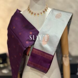 SLAY Q AARA SEMI SILK SAREE SERIES -ASH GREY + DARK PURPLE