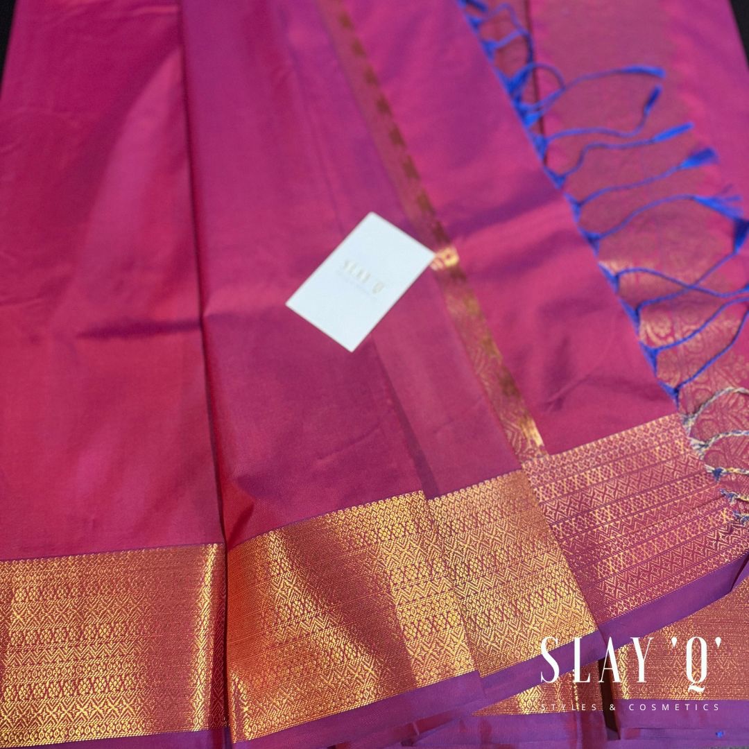 SLAY Q NESA SERIES | PLAIN PATTU SAREE WITH RUNNING BLOUSE & BEAUTIFUL GOLD ZARI BORDER | BRIDESMAID SAREE – RANI PINK