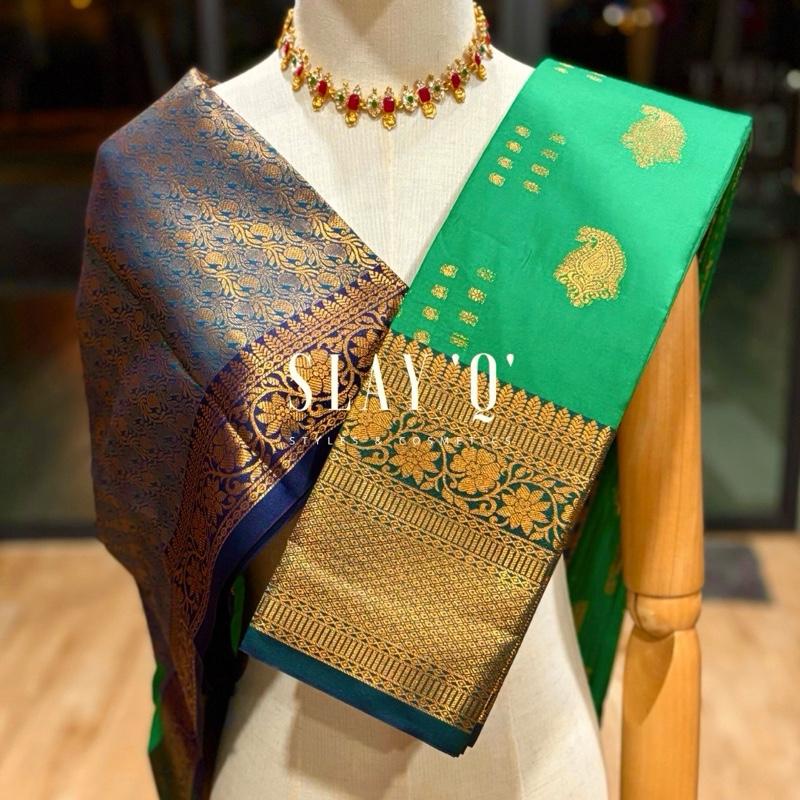 SLAY Q ALYA SERIES | SOFT PATTU WITH BROCADE BLOUSE MATERIAL | CONTRAST BLOUSE & PALLU – AQUA NEELA