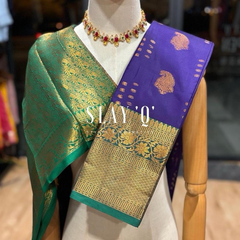 SLAY Q ALYA SERIES | SOFT PATTU WITH BROCADE BLOUSE MATERIAL | CONTRAST BLOUSE & PALLU – MAJESTIC RAJAMALLI