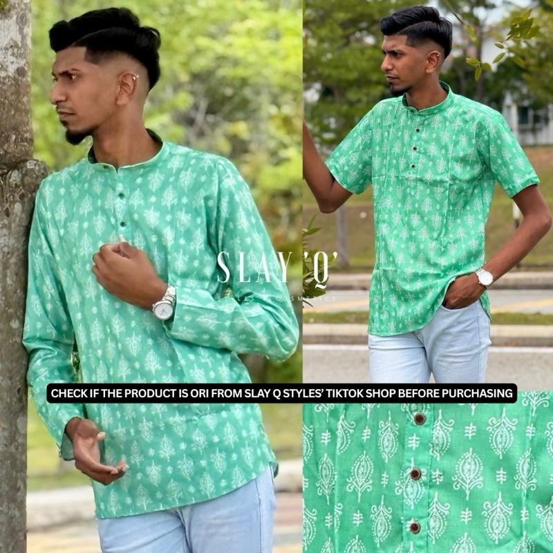 SLAY Q - SOLO SCRIPT SERIES | MEN SHIRT KURTA | GREEN VERSE quantity